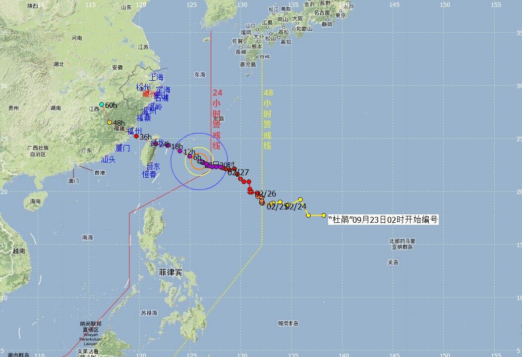 据市气象局预报,“杜鹃”未来将以每小时15到20公里的速度向西北偏西方向移动,逐渐向台湾东北部沿海靠近,强度还将有所加强。28日夜,“杜鹃”将擦过或登陆台湾北部,之后逐渐向浙闽沿海靠近,29日中午前后在福建中部(福清附近)登陆。“杜鹃”登陆恰逢天文大潮,威力不容小觑。