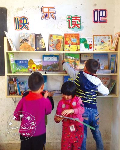 2014年10月,经过学校全体老师的努力,每一间教室的书架终于做好了。虽然不是那么精美,但有书的地方总是充满魅力的。当老师把一批批精心挑选的,适合各个年龄段孩子阅读的书籍放到书架上时,这里便成了大部分孩子最流连的地方。