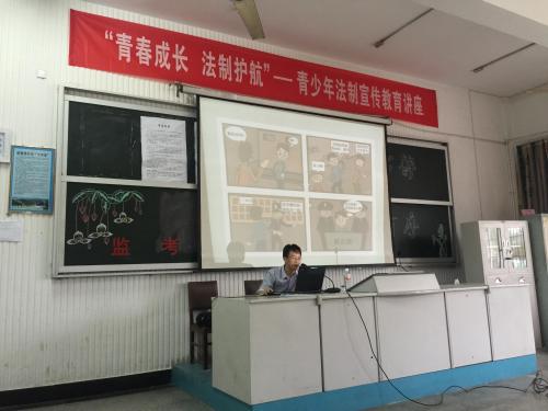 讲座邀请司法局法制科科长史洪伟担任讲座教师,史老师围绕当前青少年违法犯罪类型等方面的问题,用生动的语言,典型的案例,深入浅出地剖析了青少年犯罪的原因,并就如何有效地预防青少年犯罪和青少年如何自我保护提出了建议及措施,深受同学们欢迎。同时,青年团员代表也做了代表发言,会后青年团员也在“青春成长法制护航”签字宣誓。