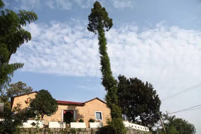 山房建在一个高高的石坎上。屋前有一棵超高的杉树,很容易找。随便问个路边村民,也都知道。