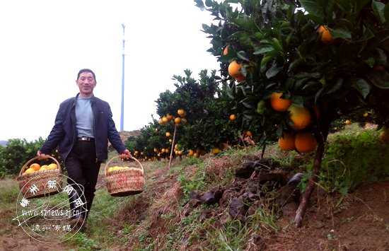 昨日,鹿山街道新大洋村,果农竺海军将第一批成熟的脐橙采摘下来。今年无连续干旱和降雨,脐橙品质好于去年,每公斤能卖到12元。