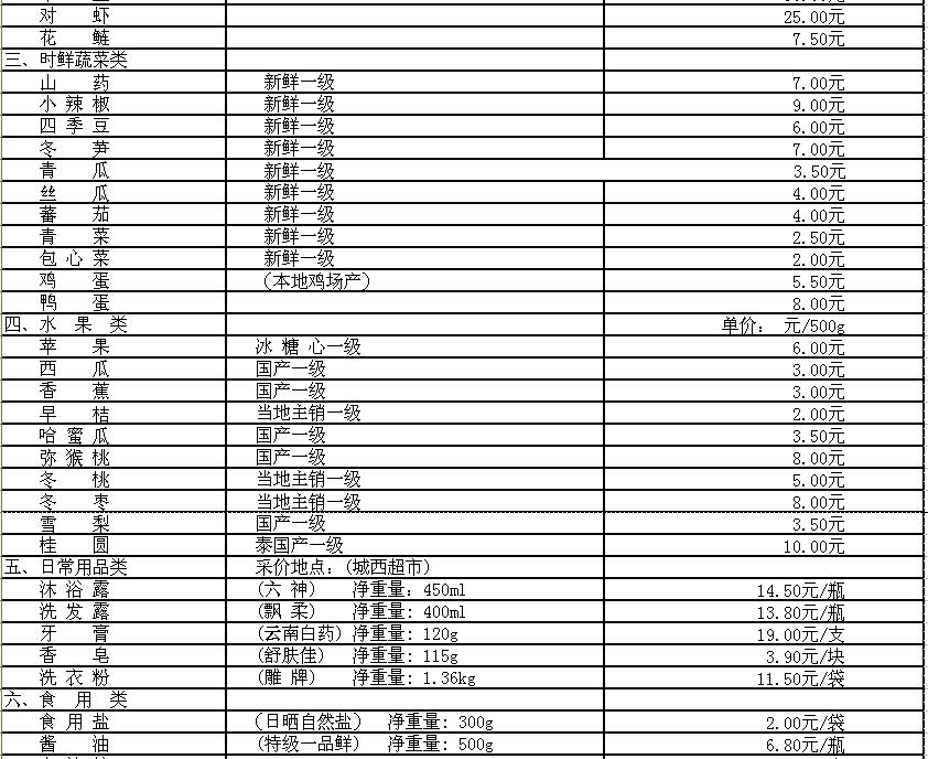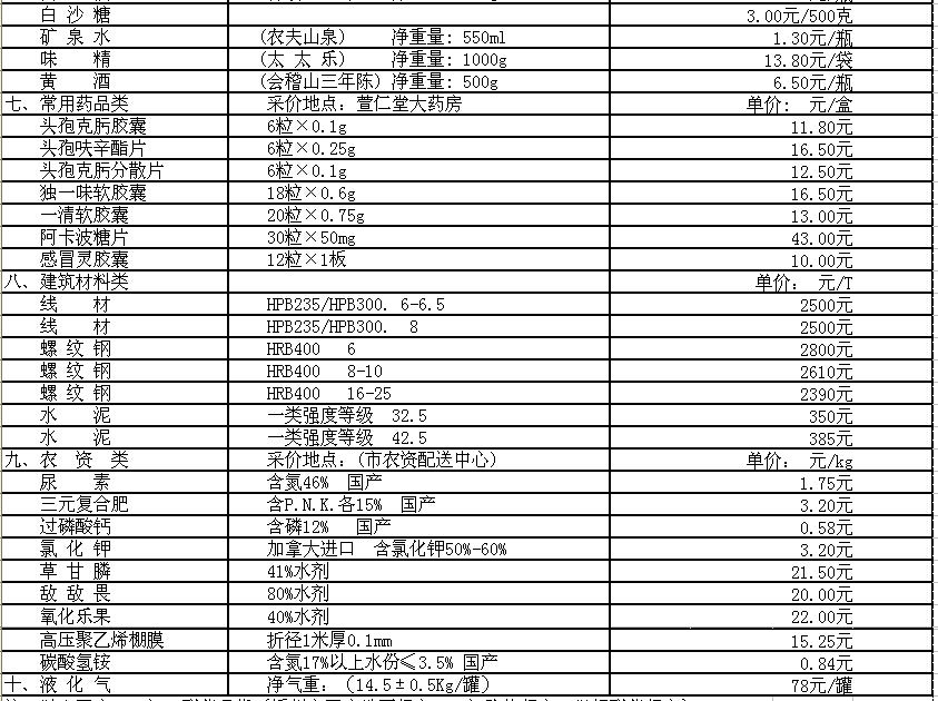 嵊州部分民生价格信息(采价时间11月16日)