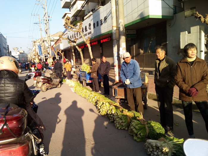 经过连续20几天的阴雨后,昨日、今日两天终于迎来了久违的阳光。应该在农历小雪完全成熟可以收割的九心菜、白菜都集中上市。价钱一般在每公斤2元左右。