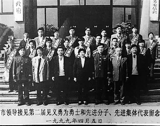 17年前,鲍建江(右上角)被评为“绍兴市第二届见义勇为先进分子”。