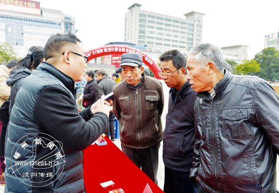 12月4日上午,2015年“12.4”国家宪法日暨全国法制宣传日广场活动在市文化广场举行。本次活动的主题是“弘扬宪法精神,推动创新、协调、绿色、开放、共享发展”,市普法办组织全市38个部门、单位开展法律咨询服务活动,共发放宣传资料5000余份,接受法律咨询300余人次。活动期间,市普法办、市司法局还开展了系列法制宣传活动。图为工作人员在教市民如何识别假烟。