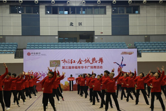 2015年11月29日,中信银行绍兴分行第三届“幸福年华卡”广场舞活动在绍兴文理学院河西校区体育馆主馆举行,共吸引绍兴主城区6支代表队600多人参加。活动当日,绍兴地区参演者与全省五万多名中老年朋友在各地区、各县市于同一时间进行全城热舞,开创了万人同跳广场舞的新模式。表演舞曲《中信红•红动中国》由中信银行邀请“小苹果”、“最炫民族风”的编舞杨广成亲自编导完成,受到了中老年朋友的热烈欢迎,已风靡绍兴市区各个广场,成为绍城一道靓丽的风景线。