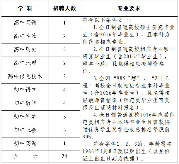 二、招聘学科、人数、专业要求