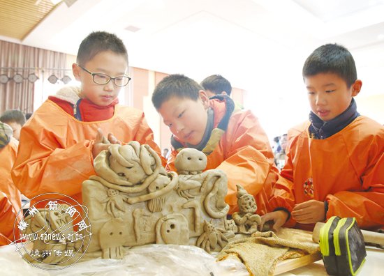12月18日,“非遗进校园·传承人授艺”活动在逸夫小学举行,让学生亲身感受了非遗的魅力。图为逸夫小学学生现场制作泥塑。