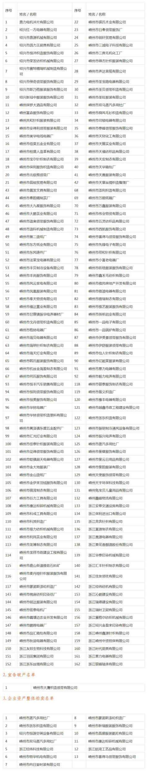 浙江省嵊州市人民法院失信被执行企业通报
