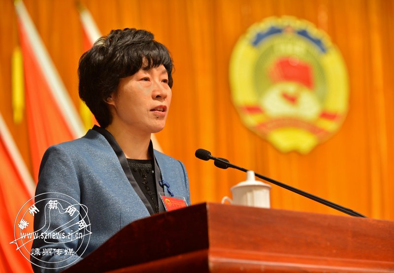 何国英代表政协嵊州市第十四届委员会常务委员会向大会作工作报告。