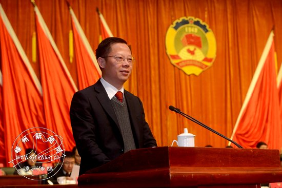 李香富向大会作提案工作情况的报告 (马玉龙 摄)