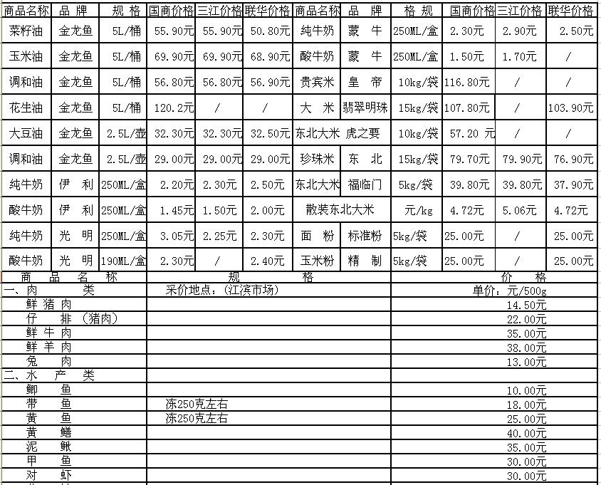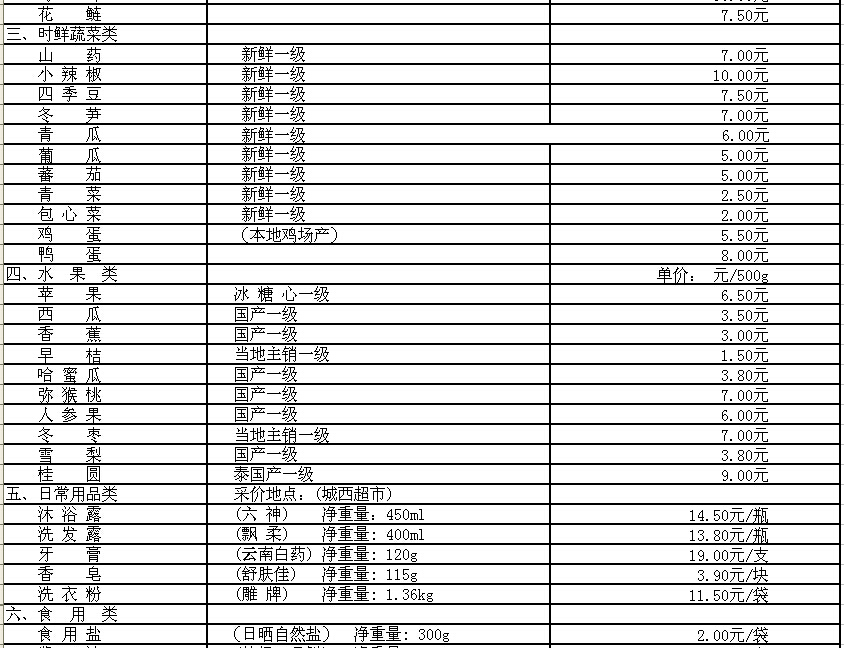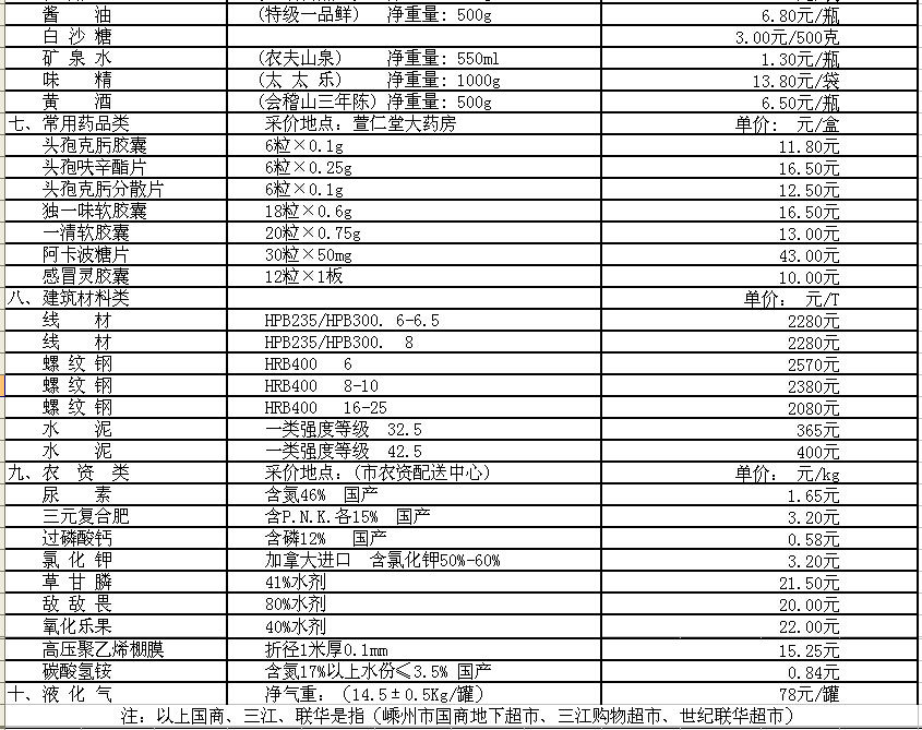 嵊州市部分民生价格信息(采价时间1月15日)