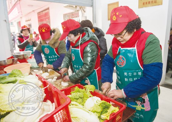 村嫂为新北社区的23位居家养老服务对象做顿丰盛的午餐(马玉龙 王勇吉 摄)