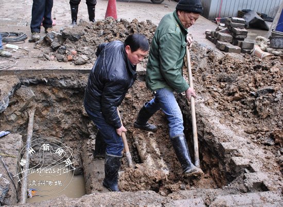 图为三江城四海路爆管抢修现场