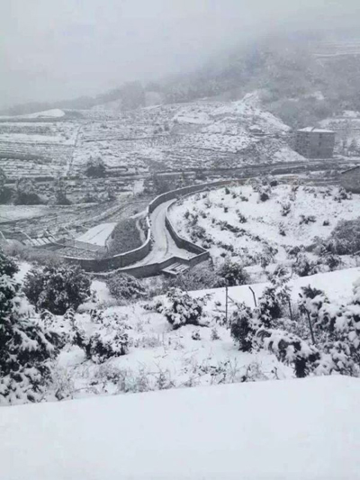 昨日的一场雪如期而至,让许多山区银装素裹。图为谷来镇谷来三村田良自然村的厚厚积雪。