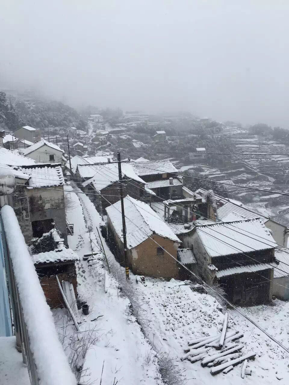 仙岩镇白岩村雪后白茫茫一片