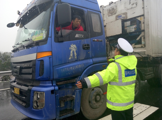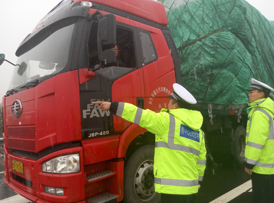 今天上午,由于上三高速新昌段积雪增多,发生几起交通事故,为此从清晨五点起,上三高速转甬金高速互通枢纽已采取全面封道措施。为保证高速交通安全,绍兴高速交警二大队全员出警,为出行车辆保驾护航。图为高速交警在现场指挥交通。