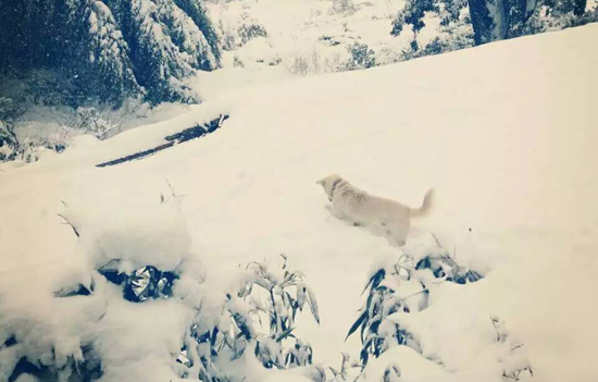 连日降雪,西白山腰积雪已达30多公分,大人小孩都躲在家里烤火炉。一只名叫小雪的狗狗却被雪景吸引,跑到雪地里跟皑皑白雪比试谁更白。