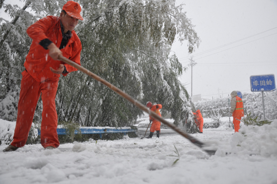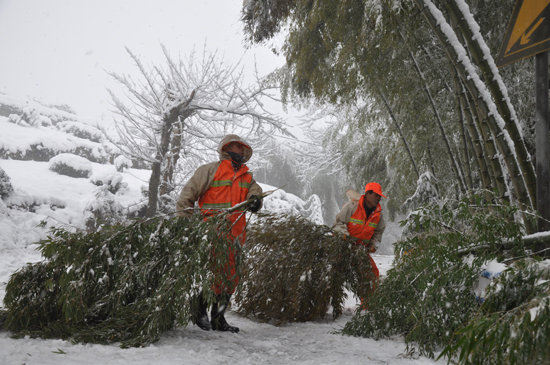 我市多条道路受雪堵封道 公路部门紧急抢险