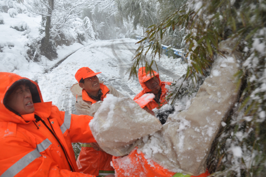 我市多条道路受雪堵封道 公路部门紧急抢险