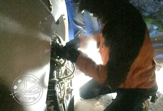 麻绳编好了,又一点一点的套到被困车辆的轮胎上,再用救援车将被困车辆拖到安全地段。“当时,那位司机已经不敢开了,我们救援队的一个老司机,一直帮他开到了没有积雪的地段。”直到晚上11:00多,被困人员才被安全救出。