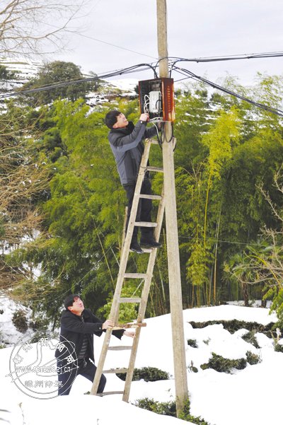 电视信号中断 维修人员踏雪抢修