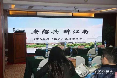 1月21日,由绍兴市旅游委员会主办的“老绍兴,醉江南”2016绍兴(深圳)旅游推介会在深圳隆重举行。绍兴市旅游委员会领导、深圳文体旅游局领导、50余家深圳旅行社以及绍兴景区相关负责人出席了本次推介会,还吸引了南方都市报、深圳晚报等深圳数十家传统报社及网络新媒体参加,现场嘉宾将近百人。双方就加强旅游方面的合作进行了良好的沟通与交流。