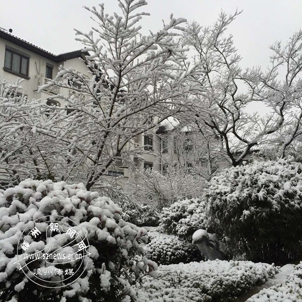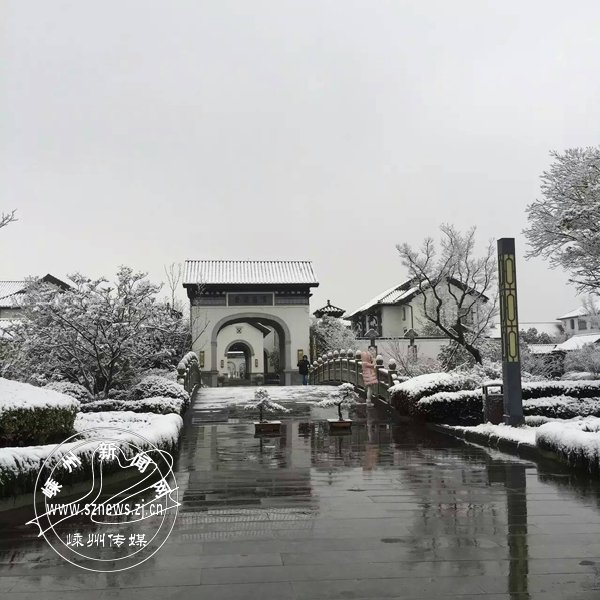 受弱冷空气影响 ,昨晚开始,我市普降雪花,经过一夜飘雪,我市越剧艺校犹如冰雪琉璃世界一般银装素裹,简直美翻了。图为越剧艺校一角。(网友 孙育慧 摄)