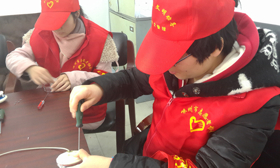 嵊州市国税局团支部的年轻干部们得知水务集团招募志愿者,积极加入到抢修水表的义工队伍中,为居民解决寒冬里的燃眉之急。“师傅,这个该怎么修理?”“师傅师傅,我的手破了……”水务集团办公室里热闹纷呈。从业务干练的税务小青年,成功化身为手脚麻利的水务“小红帽”。虽然问题层出不穷的,但丝毫不能打消小红帽们志愿服务的热情。