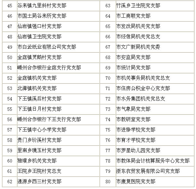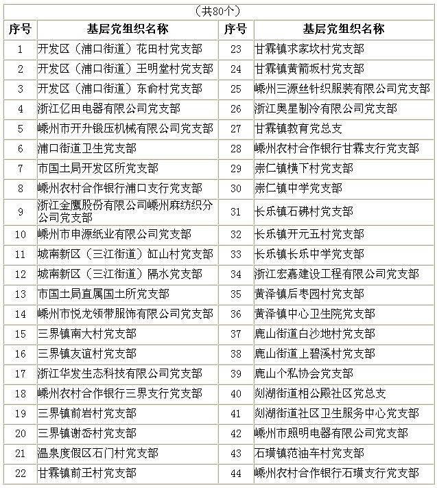 嵊州市2015年度四星级基层党组织名单