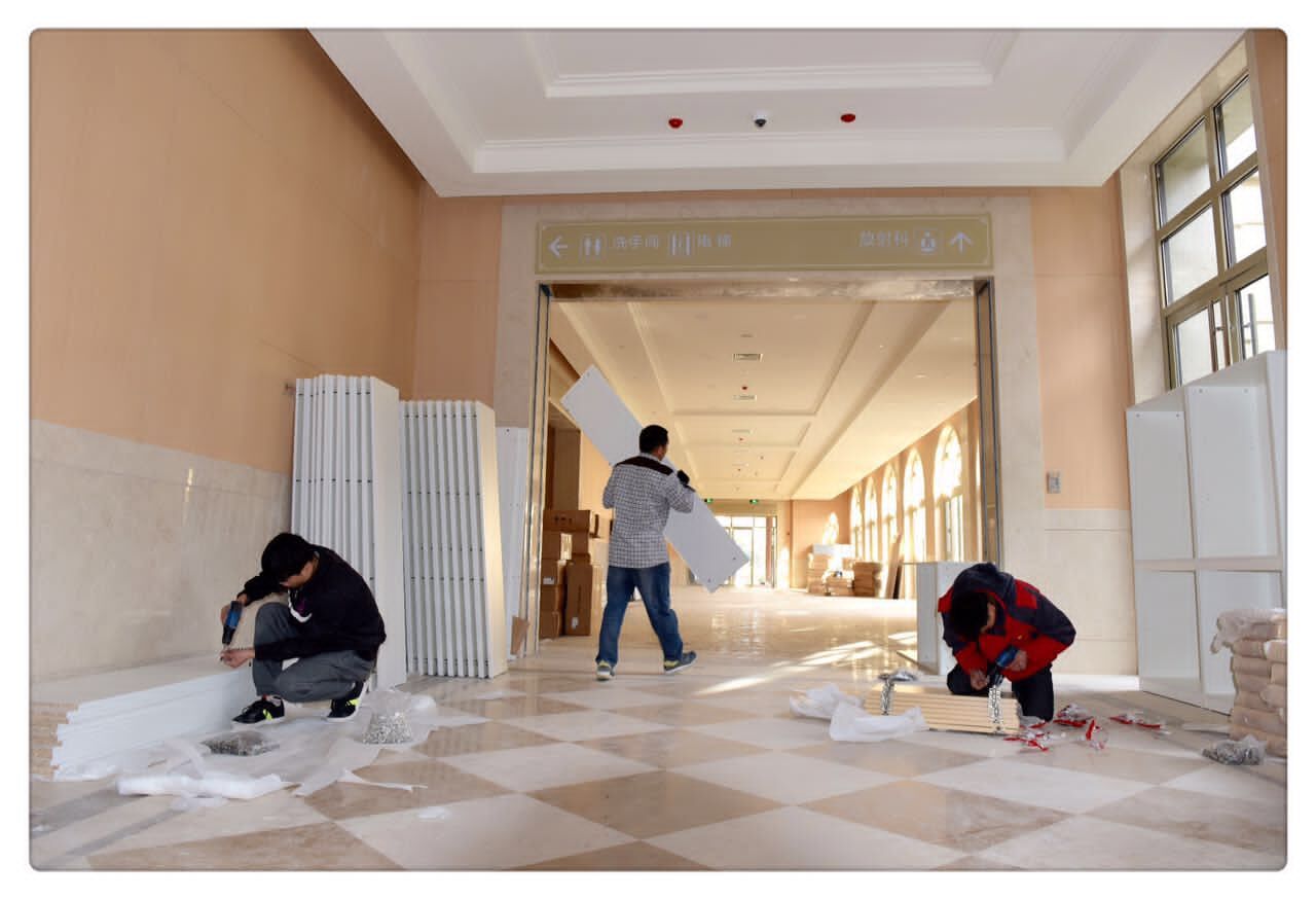 为保证市新医院3月份成功试运行,负责软装的施工队正月初三起日夜加班施工。