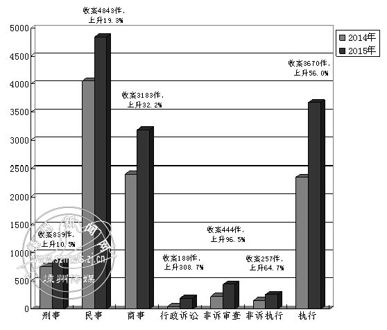 图二:2014-2015年审判、执行收案情况图
