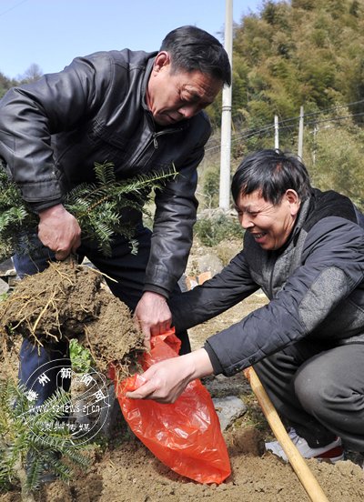 近日,在雅璜乡雅璜村相华自然村的香榧苗圃内,种植户正在销售盆景香榧苗。我市是香榧苗生产基地,为提升榧苗的利润,不少种植户把四季长绿的香榧苗作为盆景销售。一株普通的5年生香榧苗只能卖100元左右,而盆景香榧苗至少可增收30%以上。