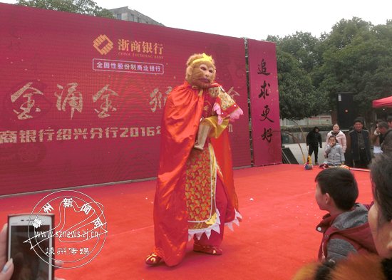 为欢度元宵佳节,2月21日浙商银行绍兴嵊州支行在市中心广场举行“增金涌金 猴年多金”大型产品推介活动。