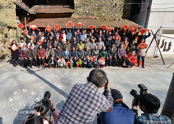 照片里,五世同堂的40多号人,团团簇拥着90岁的李阿招。李阿招神清气爽,满脸都是心满意足的微笑,前后左右的儿孙辈,似乎被老太太感染了,也都对着镜头笑。这是正月初四那天,汪毅强、范大成等摄影师为李阿招一家拍摄的全家福。李阿招是仙岩镇舜皇村人,这天,她的儿女为她庆祝90大寿。五世同堂的李阿招,下面的儿孙已多达60多号人,是名副其实的大家庭。只是有些儿孙在外地,无法赶回来,所以一大早就从电话里给老太太祝了寿。老太太呢,身体硬朗,就是耳朵背了点,但一听到电话铃响,就乐颠颠地跑去接电话。她实在是太开心了,五世同堂呢,并且头发花白、像她一样做了太公太婆的儿子和女儿,身体一个比一个强健,日子也一个比一个过得红火。