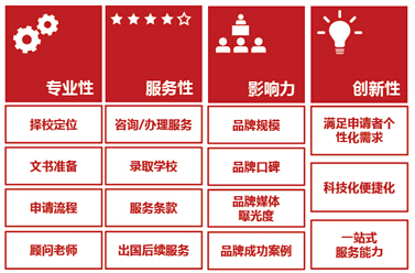 留学人员针对他们接触过的中介及整体客户体验,用1-10分对中介机构进行了一套客观评价。再通过对留学中介市场行业专家和资深从业人员的访谈和意见征求,标准量化后整合留学客群在各指标上的评价,得出结论供留学客户借鉴。