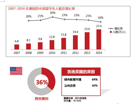 自2007年以来,中国赴美留学人数不断走高,每年保持20%左右的增长率,跃居美国最大的留学生生源国。随着美国留学签证政策的放宽,这个数值无疑会继续增加。