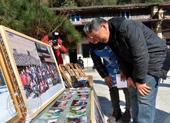 上午10时许,村道上欢声笑语,各家各户结队前来,男女老少人人身着节日的盛装,洋溢着浓浓的过年气氛。见到摄影师们来了,小山村一下子就热闹起来。见到这个场景,摄影师们也特别来劲,立刻做起准备工作,并拿出去年拍摄的全家福照片,放置在村口石凳上方便大家认领。“这个是我们家的,这个是老单家的。”看着前一年拍摄的照片,村民脸上都乐开了花。