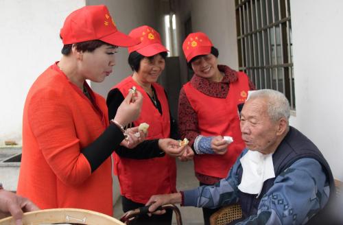 3月8日下午,甘霖镇民间人才、爱心助力团队、“冠军小笼包”——沈红平一行携手甘霖镇妇联、团委与丽湖“村嫂”一起走进丽湖村敬老院,为老人们包包子,送温暖。一走进敬老院,各支服务队伍便有条不紊的忙活开来,既有分工又有合作,一番热闹景象。爱心助力团成员发挥专长,和面、擀面皮、包包子,为老人们准备风味独特的点心。妇联、团委、村嫂志愿者们则小心翼翼地将老人们扶到大堂,陪他们拉家常,将刚出炉的包子喂到老人嘴边。吃着香喷喷的包子,听着志愿者们嘘寒问暖,老人们脸上挂满了笑容,戏称“享福了”。