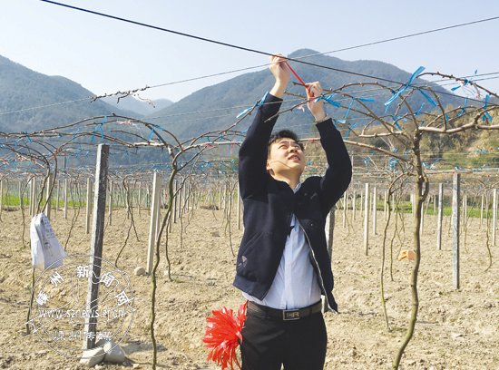 读完大学,在上海的企业实习,总以为他将与别的天之骄子一样,从此在繁华的城市里穿梭。不想,他却转身回到家乡,承包大片土地,当起了农民。昨日,在仙岩镇桥石头村兰溪自然村的一处猕猴桃基地里,记者见到了回乡创业的大学生丁建中,这个24岁的小伙子正在给猕猴桃树固定枝条。