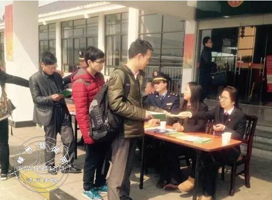 黄泽法庭的法官们在甬金高速黄泽服务区发放各类宣传资料