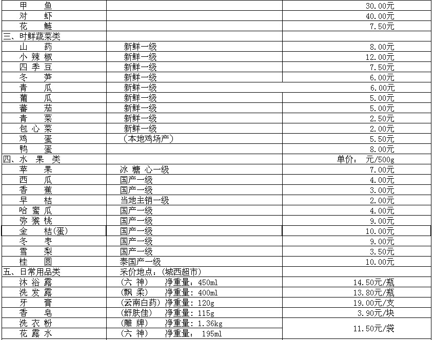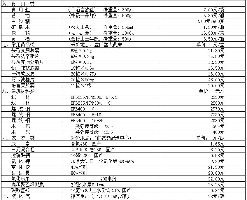 我市部分民生价格信息(采价时间:3月15日)