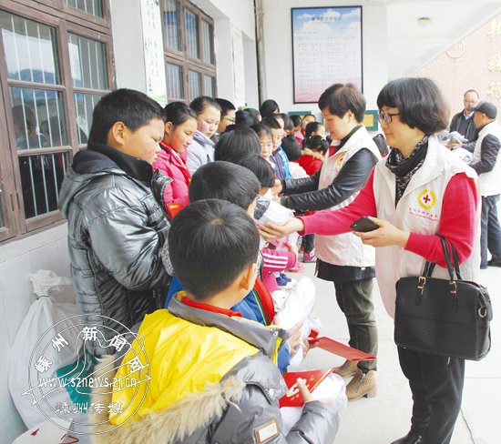贵门乡中心学校地处我市西南部山区,学生中留守儿童较多,家庭经济条件总体较差。红十字会工作人员向全校240名学生转赠了爱心企业捐赠的“爱心袜”,向20名贫困学生发放了嵊州农村合作银行捐赠的助学金,希望受助学生好好学习,以一颗感恩之心回报社会的关爱。