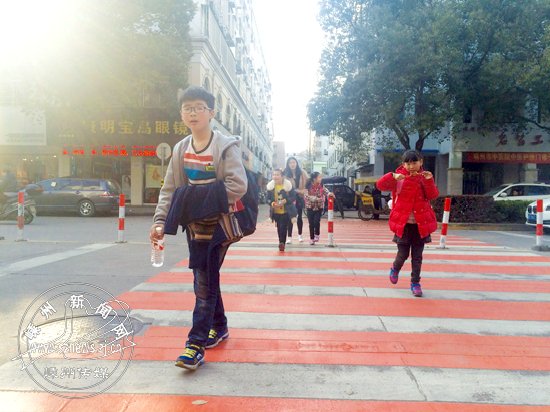 昨日下午,记者在市中医院门口看到,原本白色的斑马线,变成了红白相间的斑马线,不少路过的市民都对这条“变脸”了的斑马线感到好奇。
