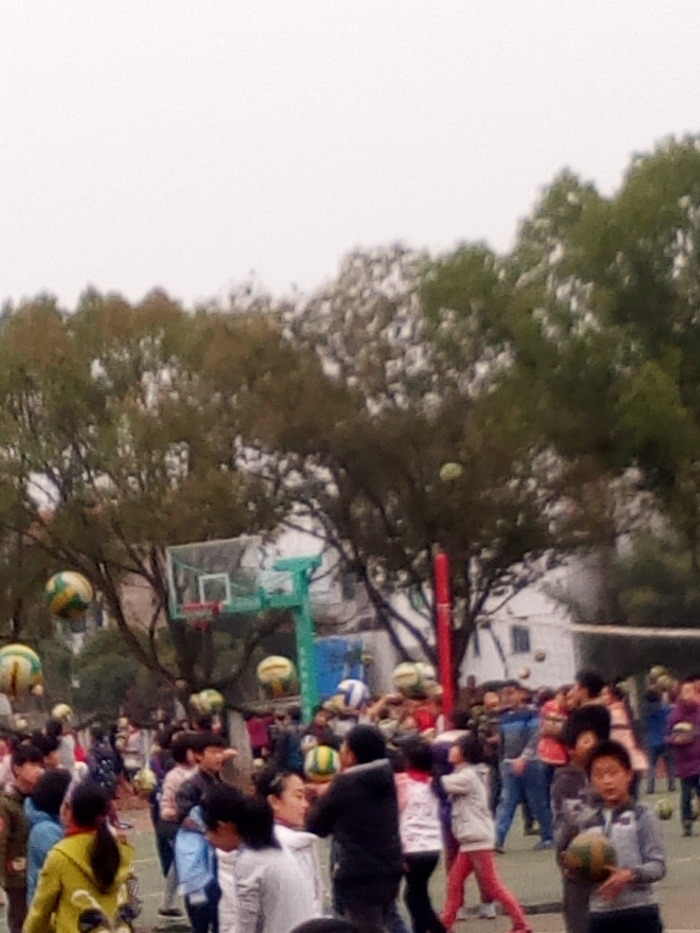 每当到大课间时间,黄泽镇校的操场是一天中最欢乐的时刻,随着课间操的结束,同学们就拿起随带在身边的排球,按照事先划分的年级段及班级地块区域,在老师的指导下进入25分钟左右的排球垫球训练。此时此刻,1300多个排球就腾飞起来,整个操场上犹如大锅里刚烧开的沸水点,一上一下地跳跃着。有的自己一人抬臂垫球;有的二人对练;还有的三人定向一托一垫。同学们其花样之多,技艺高超。