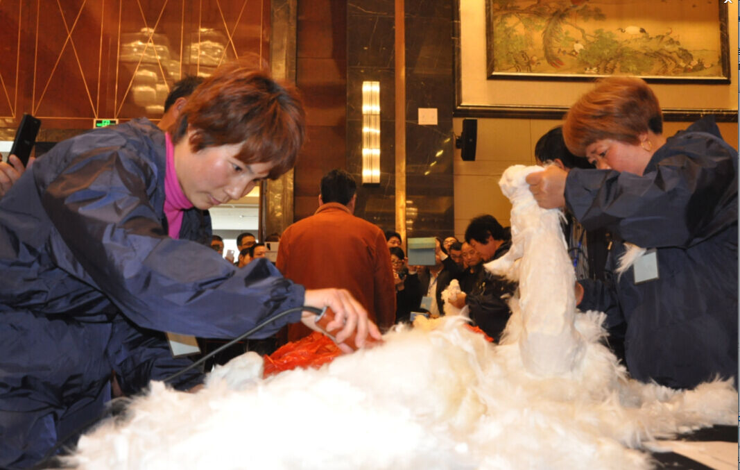 电动剪毛比赛是大会的一项日程,用电动剪毛器给兔子“理发”,不仅可以更好的保护小兔不受伤害,而且节省了人力,效率较人工剪毛提高了1倍。