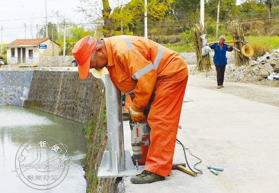 近日,市公路管理局的施工人员正在通往绍兴温泉城的一处乡村公路安装护栏。
