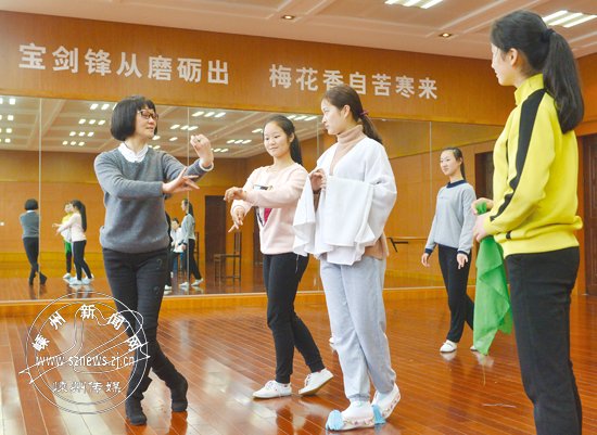 这几天,越剧艺校学生正在紧张地排练《五女拜寿》,因为3月26日晚上,《五女拜寿》要精彩亮相,导演和学生哪敢有半丝懈怠?昨日上午,指导老师、导演王学飞再次带领学生进行排练,并把前天晚上彩排过程中出现的问题进行讲解和纠正。
