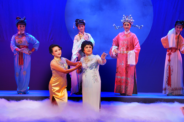 这是越剧史上一次传奇演出——“千里共婵娟”全明星版王(文娟)派越剧专场,登台的是90岁的王文娟。
