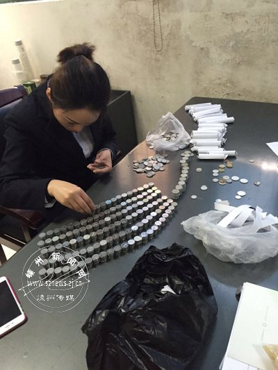 5旬女子积攒十万多枚硬币 工行嵊州城南支行员工耐心清点